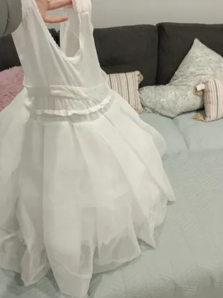 Precioso 😻 vestido de comunión blanco roto con fajín en azul cielo y bonita lazada detrás. Manga francesa bordado en cuerpo, mangas y final de falda. Apertura en la espalda muy favorecedora 😍 pequeños lazos en las mangas. Tela plumeti con su forro y cancán incluido. Te regalo 🎁 esparteñas a juego si te acopla la talla es una 33 también son forradas con tela plumeti con un lazo. No dudes en preguntarme por las medidas. Traje y esparteñas de marca Montserrat Lozano. Lo vendo por mucho menos de la mitad de su precio en tienda. Super oportunidad👌ya que el precio del total en su día, costó casi 800€