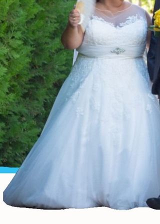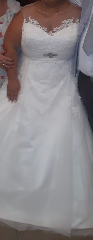 Se vende vestido novia de tallaje grande está nuevo con el velo de 4m y el cancan