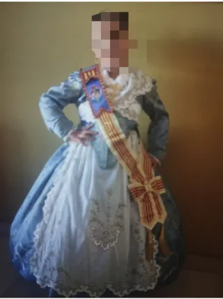 Conjunto de traje de fallera para niña, incluye cancan. - precio negociable - Traje de fallera azul y blanco. - Talla niña 5-6 años - usado una vez