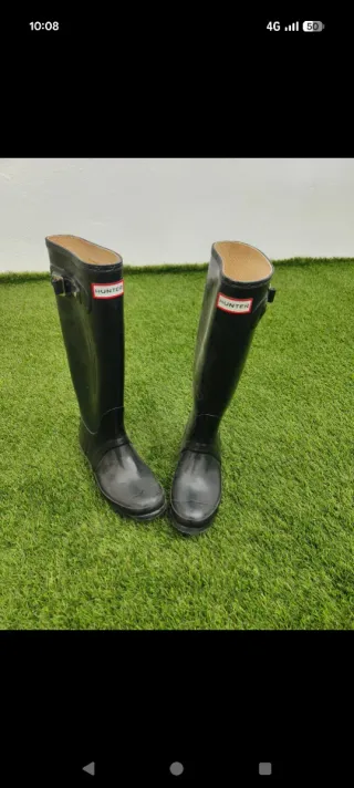 Botas de agua altas de la marca Hunter. - Color negro. - Diseño clásico con hebilla lateral.