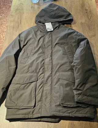 Chaqueta parka de mujer, nueva a estrenar. - Diseño con capucha. - Bolsillos frontales. - Cierre central. Totalmente nueva, con etiqueta. La vendo porque me va grande y se me pasó el plazo de devolución.