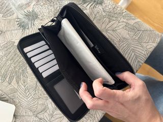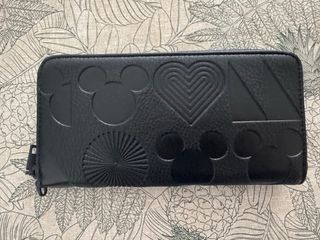 Monedero negro con diseño disney - Grabados de Mickey Mouse. - Diseño de corazón. - Figuras geométricas. - Para tarjetas y también para ponesas