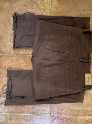 Pack de cinco pantalones tejanos. - Color marrón, gris, negro y azul. 4 Stradivarius, 1 Berschka. - Talla 34 (XS). Estan usados pero en muy buenos condiciones. Los vendo como lote. Se han quedado pequeños a mi hija.
