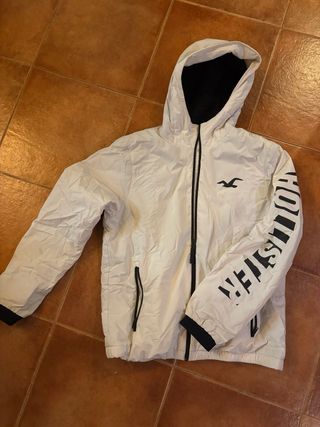 Chaqueta ligera con capucha y forro interior negro. Presenta el logo de Hollister en el pecho y el nombre de la marca estampado en una manga. - Cierre de cremallera. - Bolsillos laterales con cremallera. - Puños y bajo elásticos.