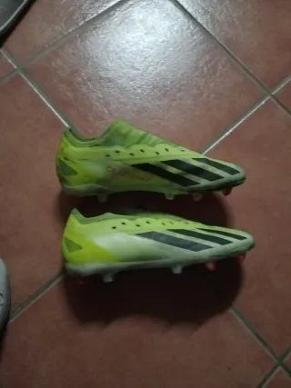 Botas de fútbol Adidas Crazyfast en talla 42. Diseñadas para un rendimiento óptimo en el campo. - Combinación de colores verde y negro. - Diseño moderno y llamativo. Muy poco uso, se venden ya que ha crecido el pié