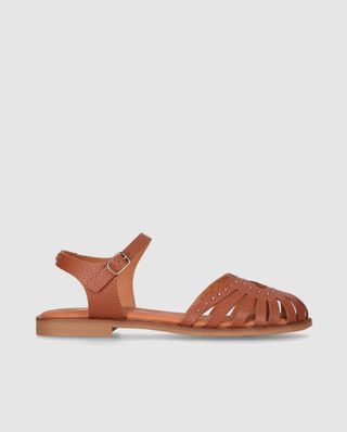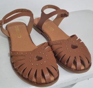 Sandalias planas de piel con un diseño moderno y detalles que marcan la diferencia. - Piel de alta calidad. - Tachas decorativas. - Puntera con diseño. - Cierre de hebilla.