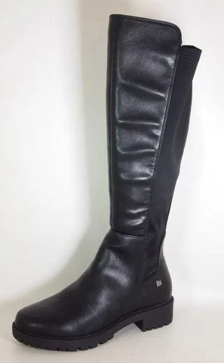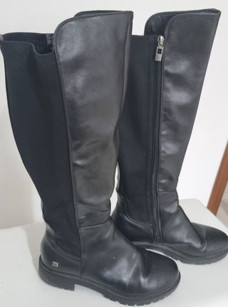 Botas altas negras Mustang Campa con un cierre de cremallera.La partem,superior se construye en polipiel, combinado con el interior es de textil La suela plana - Parte delantera de piel. - Panel elástico en la parte trasera de la caña. - Suela de goma con buen agarre. - Detalle metálico con el logo de la marca en el lateral.