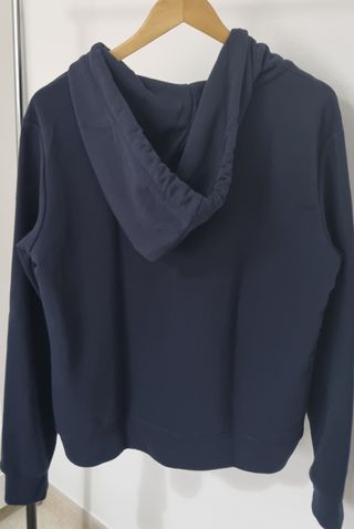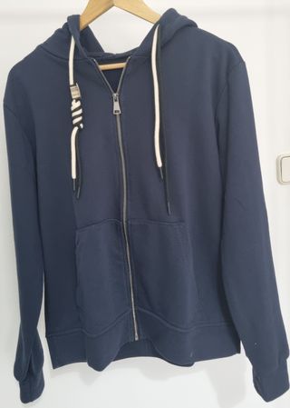 Sudadera con capucha y cierre de cremallera completa. - Cordones blancos para ajustar la capucha. - Bolsillo frontal tipo canguro. - Puños y bajo elásticos.