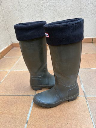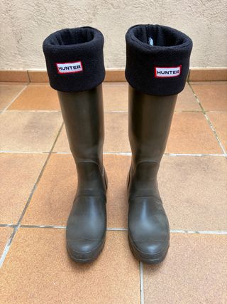 Botas de agua altas de la marca Hunter en color verde. Incluyen calcetines negros a juego. - Calcetines de forro polar. - Logo de Hunter en los calcetines.