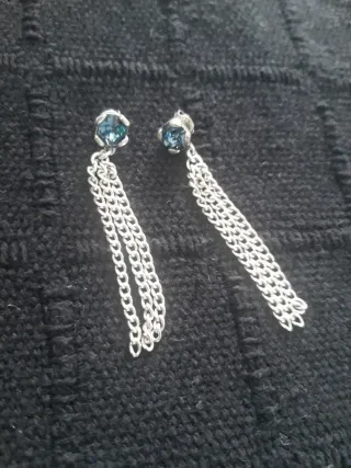 Elegantes pendientes de la marca UNO de 50. - Diseño con cadenas plateadas. - Detalle de piedra azul. - Cierre de presión.