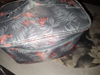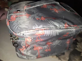 Neceser con un bonito estampado de flamencos y hojas tropicales. Perfecto para organizar tus cosméticos. - Diseño con flamencos en color rosa. - Fondo gris con detalles de hojas. - Cierre de cremallera.