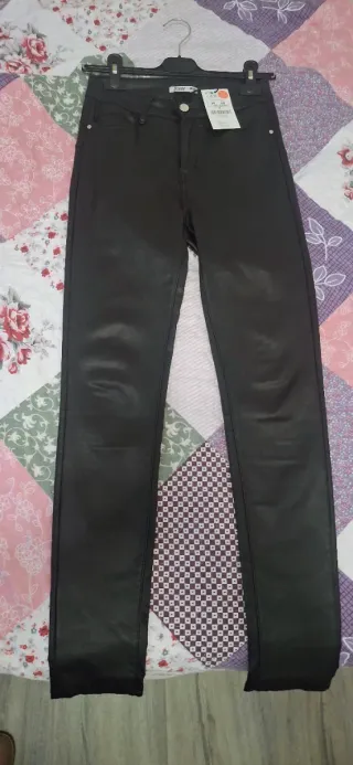 Pantalón de polipiel con efecto push-up, a estrenar. - Diseño ajustado. - Acabado brillante.