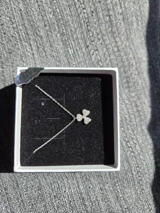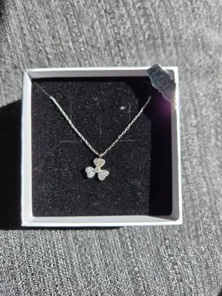Collar de plata con un bonito diseño de trébol. Es una pieza nueva a estrenar en su caja original , perfecta para añadir un toque de elegancia, bien para uno mismo o para regalo. - Colgante con forma de trébol. - Cadena fina y delicada.