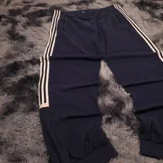 Authentic vintage Adidas track pants dating back to the 1980s. Presented in a versatile black colorway, they feature the iconic white three stripes running down the sides and the classic Adidas logo embroidered on the left thigh. Designed with a comfortable elastic waistband and a loose, straight cut typical of the era. A perfect piece for an old school sport look or authentic retro street style. Condition: In good vintage condition. If there are any flaws, they are visible in the images.