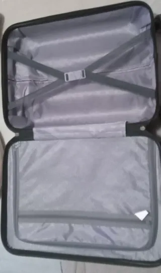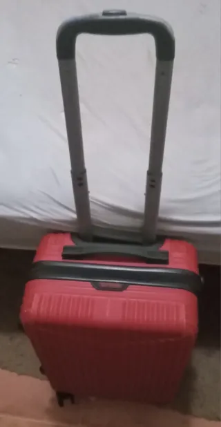 Maleta de viaje con ruedas y asa extensible. - Asa superior para facilitar el transporte. - Ruedas para un desplazamiento cómodo. Sólo tiene una pequeña grieta.