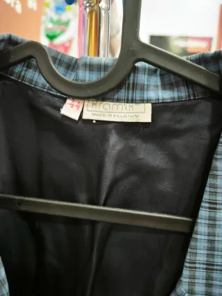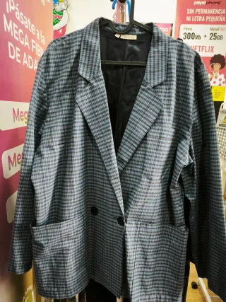 Blazer con estampado de cuadros en tonos azul y gris. Presenta un diseño de solapa clásica y cierre de doble botón. - Dos bolsillos frontales. - Forro interior negro.