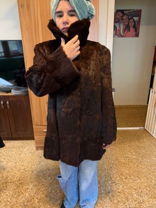 Chaqueta de piel de color marrón. Un diseño elegante y cálido. - Material: Piel auténtica. - Cuello alto. - Mangas largas. Largo por la cadera