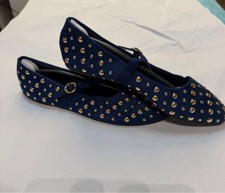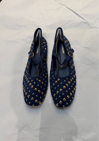 Bailarinas terciopelo azul con tachuelas doradas