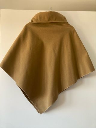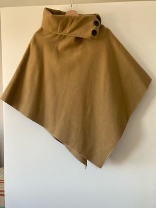 Preciosa capa o poncho en color camel, ideal para añadir un toque de estilo a cualquier conjunto. - Diseño elegante con cuello alto. - Cierre con dos botones oscuros. - Tejido suave y cálido.