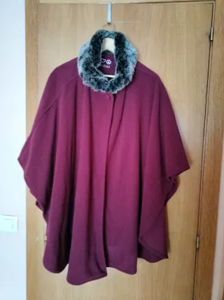 Preciosa capa o poncho con un toque de elegancia.Color Burdeos. - Diseño amplio y cómodo. - Detalle de cuello de pelo sintético.