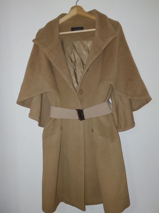 Capa elegante de color marrón, sin estrenar y con etiqueta. - Cierre con botón. - Cinturón fino a juego.