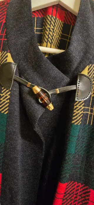 Capa vintage espectacular en perfecto estado. - Diseño de cuadros en tonos verdes, rojos y ocres. - Cierre con botones de madera y polipiel. - Corte amplio y cómodo.