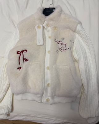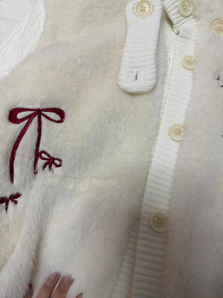 Abrigo de punto con doble capa de felpa y mangas de canalé. - Diseño frontal con detalles bordados de lazo y un simpático dibujo. - Cierre de botones. - Cuello redondo.