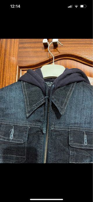 Cazadora vaquera corta con diseño de dos capas. - Estilo corto y moderno. - Combina denim con un tejido tipo sudadera.