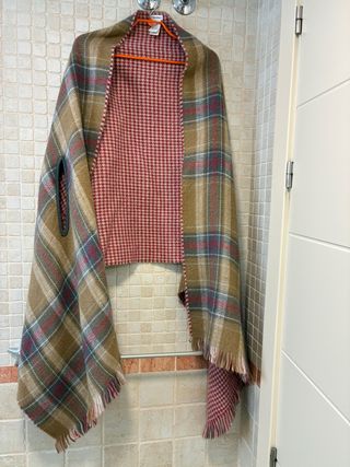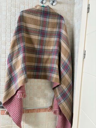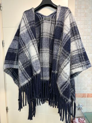 Capa poncho Ralph Lauren en cuadros azules y grises. Muy abrigada y comoda