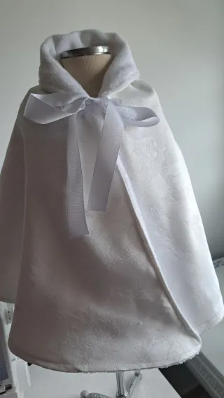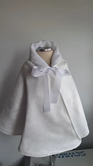 Preciosa capa para bebé, ideal para ocasiones especiales o para mantenerla abrigada con estilo. - Confeccionada en un suave tejido blanco. - Detalle de lazo decorativo en la parte delantera. Interior polar