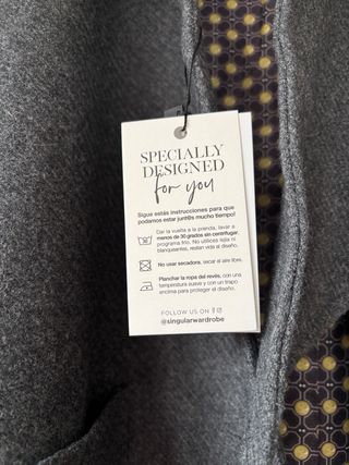 Precioso abrigo de la marca Singular Wardrobe, a estrenar. Diseño elegante y moderno. - Detalle de estrellas negras en los bolsillos. - Cuello envolvente y mangas con detalle. - Corte largo y favorecedor.