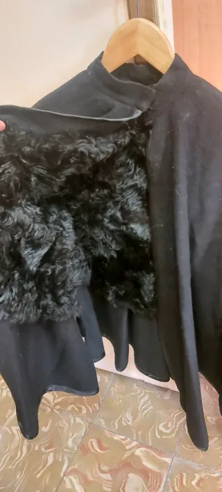 Elegante abrigo capa de piel. Hecho en España y en perfecto estado. Tienda de Granada. Tiene forro azul añil