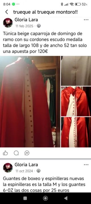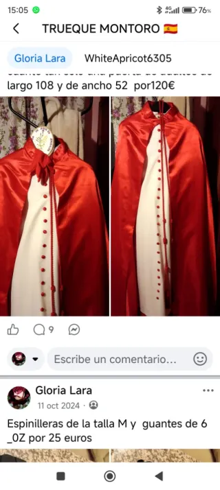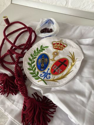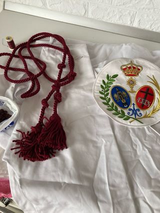 Conjunto de túnica y capa de la Hermandad de la Macarena. - Túnica de manga larga. - Capa larga con abertura frontal. - Medidas largo 150cm desde el cuello - Dobladillo 16cm