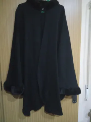 Prenda de abrigo con un diseño sofisticado y detalles únicos. - Capa con solapa y cuello de piel. - Cierre de botones. - Mangas amplias.