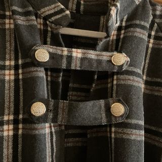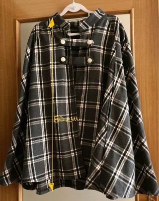 Elegante capa de vestir con un diseño de cuadros clásico. Es una prenda versátil y cómoda. - Diseño de cuadros en tonos grises y negros. - Talla única.