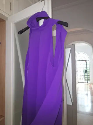 Elegante vestido lila con un diseño moderno. - Escote halter. - Tejido ligero y fluido. - Ideal para esta gran temporada.