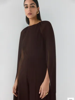 Elegante mono de Mango con detalle de capa. - Color marrón chocolate - Diseño con capa fluida. - Corte favorecedor.