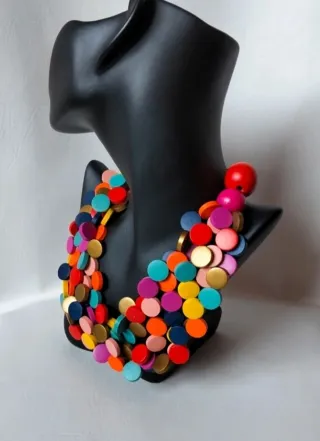 Collar llamativo con múltiples discos de madera. - Muy ligero - Diseño vibrante y alegre. - Material: Madera. - Estilo: Collares de declaración. #adalentatealamoda #poncolorentuvida #nuevo #aestrenar #recienllegado