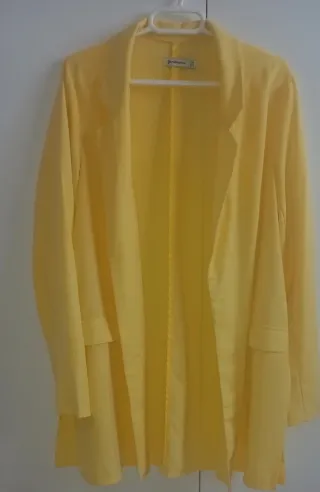 Blazer de entretiempo de la marca Stradivarius. - Diseño de color amarillo vibrante. - Talla M, equivalente a 38 o 10. - Ideal para capas ligeras en climas templados.