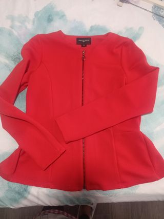 Elegante blazer con un diseño moderno y favorecedor. - Tejido texturizado. - Cierre de cremallera frontal. - Corte peplum. Queda entallada y con una forma de capa volante en la parte de abajo . Ideal para eventos de día... Comuniones , almuerzos etc primaveral y elegante. Color muy favorecedor