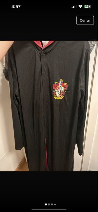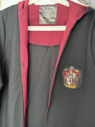 Túnica inspirada en Harry Potter, con los colores de la casa Gryffindor. Solo se ha puesto dos veces. Está en perfectas condiciones. - Diseño reversible con interior rojo. - Cierre con botón. - Escudo de Gryffindor bordado. - Bolsillo interior para guardar barita