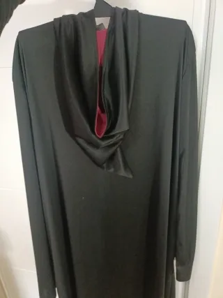 Conjunto de capa y corbata inspirado en Gryffindor de Harry Potter. Disfraz, no es producto oficial. - Capa negra con forro rojo. Con gorro y mangas anchas de pico. Cierre con 1 botón para mayor comodidad. - Corbata a rayas rojas y doradas. La corbata se ajusta al cuello con un cordón de cremallera muy práctico. La capa es negra con el forro rojo.Mangas con pico. Gorro con pico. Largo de la capa 113cm desde el hombro. Largo de manga 64cm. Ancho a la altura de la sisa 48cm. Solo me la he probado, pero no he salido con ella finalmente, así que está totalmente nueva.