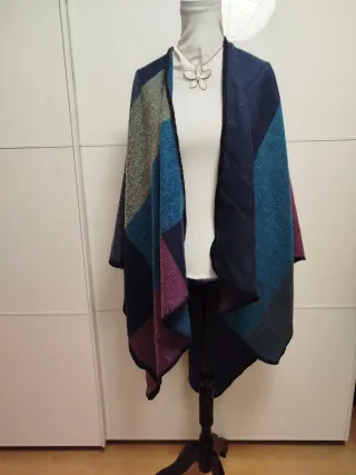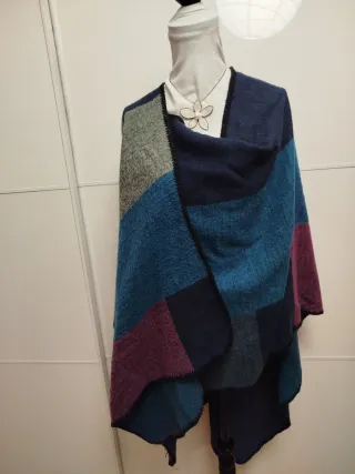 Poncho de mujer con un diseño patchwork de bloques de colores. - Tejido suave y cálido. - Ideal para complementar cualquier atuendo. Bastante uso