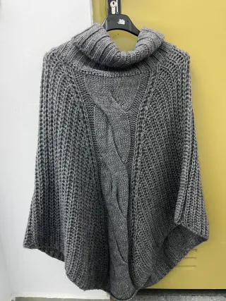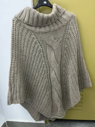 Poncho de lana con cuello alto y flecos. No envíos. Precio no negociable