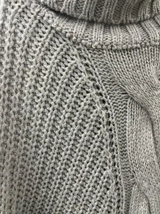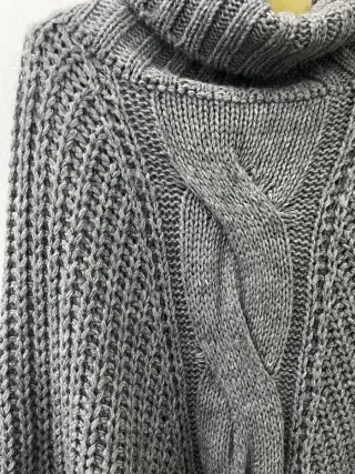 Poncho de lana tejido con un diseño moderno y cálido. Ideal para añadir una capa extra de estilo a tu atuendo. - Tejido de lana grueso y confortable. - Diseño de trenza central. - Cuello alto tipo tortuga.
