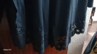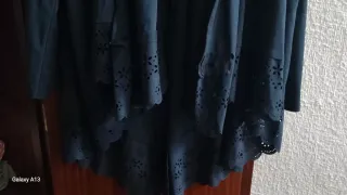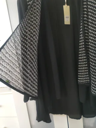 Capa con un diseño tribal en tonos marrones y negros. Es una prenda abierta, ideal para añadir un toque especial a cualquier atuendo. - Diseño tribal geométrico. - Ribete negro en los bordes. - Bolsillo lateral. - Cierre de botón a presión en un lateral. Talla M vale para un 40 hasta 42 , las medidas están en las últimas fotos.