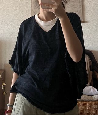 Blusa de la marca Mango con diseño de capa. - Color azul. - Talla XL.