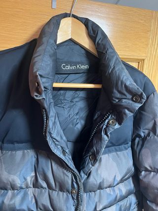 Abrigo Calvin Klein acolchado con diseño de camuflaje. - Parte superior en color negro liso. - Bolsillos frontales con solapa y botón. - Cuello alto -Mangas dobles con térmica -Relleno de alta calidad -Cremallera y botones