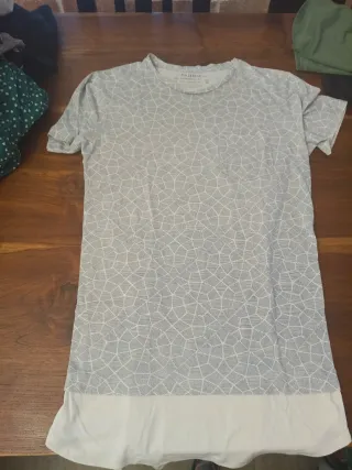 Camiseta de manga corta con un diseño moderno y original. - Estampado geométrico en tonos grises. - Detalle de capa inferior en blanco.