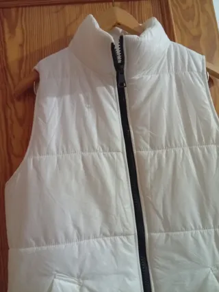 Chaleco acolchado de color blanco, ideal para añadir una capa extra de abrigo. - Diseño sin mangas. - Cierre de cremallera frontal. - Bolsillos laterales.
